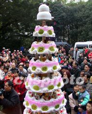 圖為當(dāng)?shù)匾皇称菲髽I(yè)特意制作的巨型賀歲蛋糕。