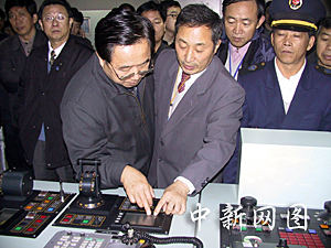 為了確!盎浐hF一號”明天順利開通,傅志寰部長率領各路專家,今天上午冒著寒風冷雨,再次視察輪渡;在船長室里,他與原鐵道部總工副部長、現國家投資開發銀行總裁屠由瑞,仔細聽取了粵海鐵一號總設計師俞寶均的技術匯報。