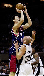 據(jù)朝鮮日報報道,姚明在接受當(dāng)?shù)孛襟w的采訪時說:“我非常感到幸福和光榮,如果出戰(zhàn)全明星賽,我一定要比出道戰(zhàn)表現(xiàn)的更好。”實(shí)際上,姚明在他NBA的處女賽中一分未得(兩個籃板),與他的NBA新狀元秀身份不符。可是姚明以他2米26的身高很快適應(yīng)了NBA的比賽節(jié)奏,作為最出色的新人號令天下。