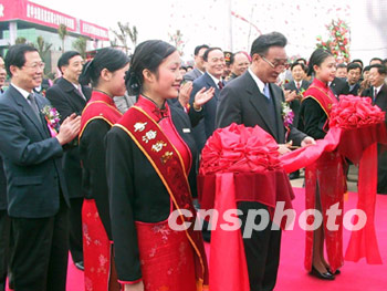 今天上午十時,一艘白色巨輪緩緩駛向北港港池,十時十分,巨輪穩(wěn)穩(wěn)停靠在北港停泊位,十時二十一分,粵海鐵一號上的鐵軌與陸地棧橋鐵軌成功對接,十時三十分,在機車牽引下,第一節(jié)渡海火車車箱開上海口南港棧橋。十點四十六分,中共中央政治局常委、國務(wù)院副總理吳邦國在棧橋火車前為粵海鐵路正式開通剪彩。