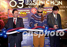 歌星陳奕迅1月7日在香港舉行「松日Matsunichi MP3 THIRD ENCOUNTER陳奕迅演唱會」記者招待會,陳奕迅與演唱會主辦機構高層作特別的“剪彩”,喻意演唱會每場都爆滿。鄧慶樂 攝