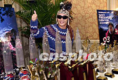 歌星陳奕迅1月7日在香港出席「松日Matsunichi MP3 THIRD ENCOUNTER 陳奕迅演唱會」記者招待會,主辦機構在會場上展示了他在歌壇所獲得的“戰利品”。鄧慶樂 攝