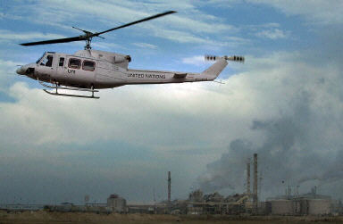 圖:聯(lián)合國(guó)核查人員首次使用直升機(jī)對(duì)伊進(jìn)行核查