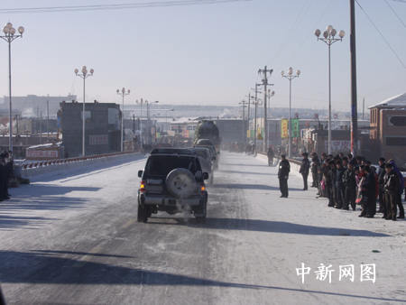 返回艙從內蒙古草原沿公路運往北京(3)孫陽 攝
