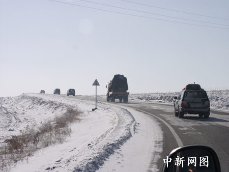 返回艙從內(nèi)蒙古草原沿公路運往北京(4)孫陽 攝