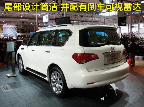 近年來SUV車型持續火爆,各廠商陸續推出新的車型以增加市場競爭力。同時性能強悍,寬大舒適的大型SUV,也得到了一些具有獨特品位喜歡運動且資金富裕消費者的最愛,因此大型豪華SUV市場也受到了不少消費者的關注。英菲尼迪是日系高端品牌中最具有藝術氣息的,今年在北京車展上就展出了全新一代的QX56,QX56作為一款7座豪華SUV車型,一經推出就立刻受到了的中國消費者的關注。近日我們從英菲尼迪4S店銷售人員處獲悉到,全新的英菲尼迪QX56將于今年9月份到店,預計售價160萬元左右。銷售人員還表示,目前各4S店均已開始接受預定,訂金10萬,第一批車主將于10月份提到現車。下面就讓我們回顧一下,在2010北京車展上見到的英菲尼迪QX56。