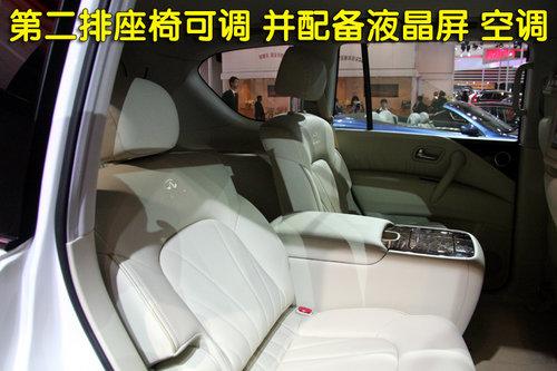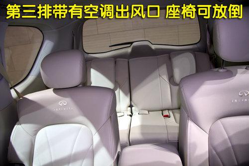 接下來我們就要說到第三排座椅了,也許這里的使用次數(shù)并不會很多,但是英菲尼迪同樣為第三排乘客提供了空調(diào)出風(fēng)口,大大提高了舒適度,如果有人故意將我擠到最后面的話,我想我還是可以接受的。如果當(dāng)你需要更大的空間作為儲物用途時(shí),第三排座椅可以進(jìn)行4/6拆分放倒,這一點(diǎn)你要相信它的實(shí)力。總之如果你需要一些個(gè)性,又想兼顧品質(zhì)與豪華舒適,這款英菲尼迪全新QX56應(yīng)該會很貼合你的想法。