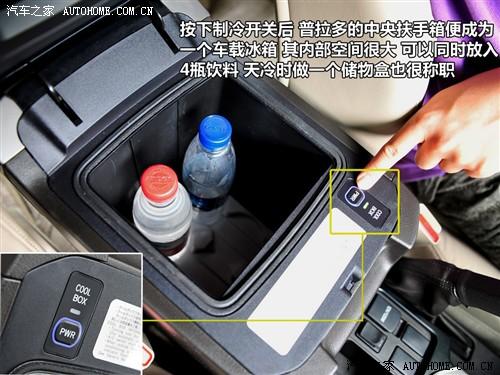 普拉多前排門板的儲物槽很寬很深,而且有單獨(dú)的杯架位置。而中間位置的兩個(gè)杯架都帶有限位機(jī)構(gòu),實(shí)用性很強(qiáng)。最大的亮點(diǎn)是前排的中央扶手箱,打開制冷開關(guān)后,它就成為一個(gè)可以容納4瓶飲料的車載冰箱啦。