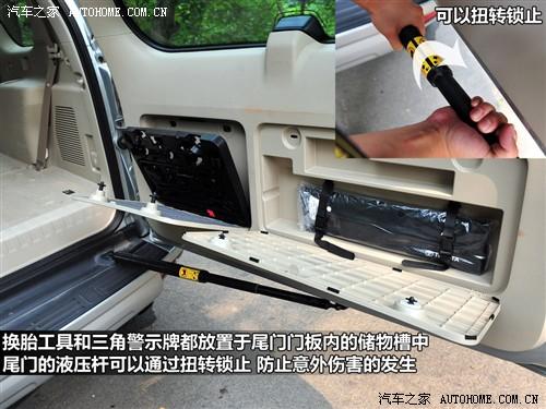 普拉多尾門的液壓桿可以通過扭轉(zhuǎn)進行鎖止,這樣可以有效防止因為誤關(guān)車門帶來的意外傷害,這個設(shè)計不需要太多成本但是非常體貼。而另一個小亮點是后備廂內(nèi)的一個220V交流電源,接些小電器非常方便。