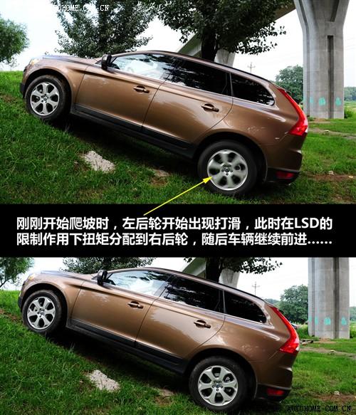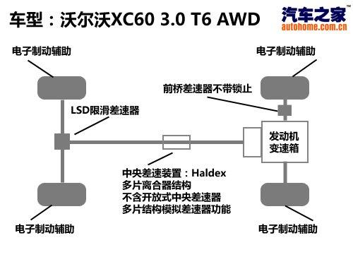 XC60是一臺(tái)偏重城市駕駛的車輛,不過作為一臺(tái)SUV,它也具備一定的野外行駛能力,該車配備了瀚德公司生產(chǎn)的第三代Haldex四驅(qū)系統(tǒng),具有多片離合器的中央分動(dòng)裝置且在后橋上具有有LSD限滑差速器,配合電子輔助系統(tǒng)進(jìn)行工作,對(duì)于難度不是太大的越野項(xiàng)目通過能力還是不錯(cuò)的,電子系統(tǒng)制動(dòng)的效果也很明顯。