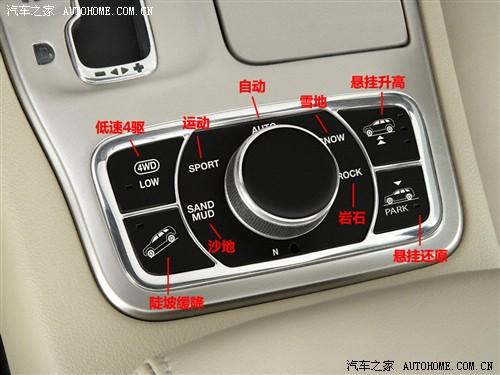 新款大切外觀和內(nèi)飾方面都有城市化的趨勢(shì),但是本質(zhì)依然未改,全時(shí)四驅(qū)系統(tǒng)和Quadra-Lift?底盤(pán)升降系統(tǒng)共同提供了不同的駕駛模式,包括自動(dòng)、運(yùn)動(dòng)、沙地、雪地、巖石等路況的選擇,在不同模式下懸掛和油門(mén)會(huì)做出不同的響應(yīng);另外可調(diào)空氣懸掛預(yù)設(shè)了5個(gè)高度模式,在最大高度時(shí)可獲得34.3°接近角,27.3°離去角和23.1°的通過(guò)角,以保證越野時(shí)的通過(guò)性。在停車(chē)時(shí)按動(dòng)“PARK”鍵,懸掛即降至低點(diǎn),方便人員下車(chē)。陡坡緩降也為駕駛者在越野時(shí)提供了不小的幫助。