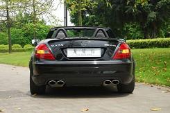 透明燈罩下的集束式前大燈和散熱器橫柵則加固了SLK55AMG的高性能跑車形象,而動感的前包圍更是讓他即使處于靜止狀態也充滿躍動的感覺。具有AMG風格的側裙也加強了車身的肌肉感,嵌入式的黑色擴散器和AMG尾翼令尾部看起來十分兇猛。