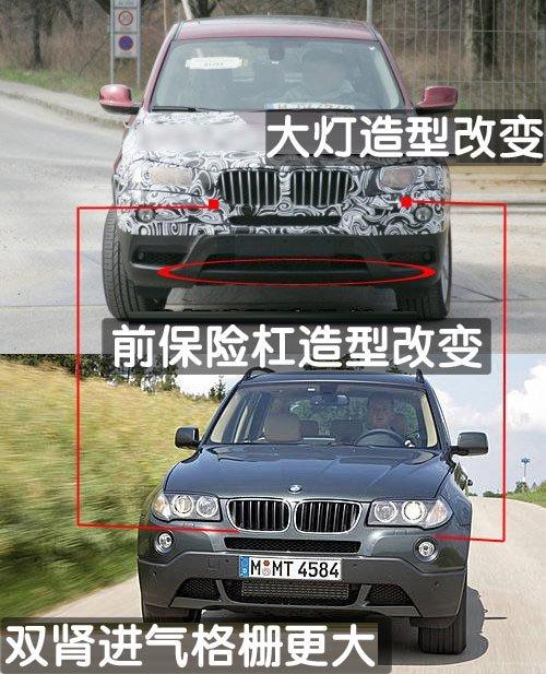 與目前的車型相比,這款 X3車型的尺寸幾乎沒有發(fā)生什么變化,其車型風(fēng)格體現(xiàn)了CS概念車上的一些元素。整體車身外觀沒有發(fā)生什么變化,但這款新車型預(yù)期將采用更為突出的散熱格柵及新的前車燈設(shè)計(jì)。除了車身外觀上的一系列改進(jìn)外,新車型還將采用一系列新配置,以此來迎戰(zhàn)來自奧迪與奔馳的競爭。新車型配置了寶馬X6車型上的夜間平視顯示器,其雙氙氣前車燈還具有環(huán)景照明功能。