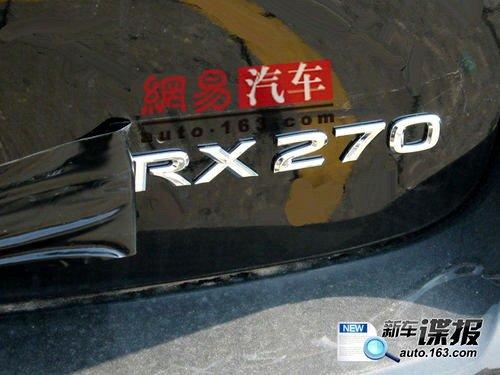 外觀上新車和RX350沒有差別。從命名來看,新車將搭配一臺排量更小的2.7L發(fā)動機。從RX系列與豐田漢蘭達出自同一平臺的情況來看,RX270所搭配機型應(yīng)該就是漢蘭達2.7L之上的IAR-FE直列四缸發(fā)動機。最大功率190馬力,最大扭矩達到252Nm。