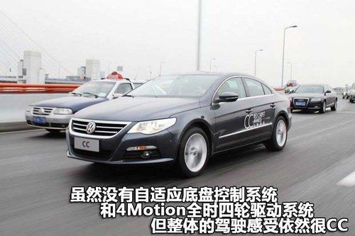 由于進口大眾CC轎跑車已于去年引入國內,所以對一汽-大眾CC的外形設計沒有太多的感覺,但不是審美疲勞。雖然一汽-大眾CC轎跑車取消了自適應底盤控制系統和4Motion全時四輪驅動系統,但整體的駕駛感受依然很CC。一汽-大眾CC轎跑車搭載了經典的2.0TSI渦輪增壓燃油直噴引擎,配合6速DSG雙離合變速器使其147Kw的最大功率和280Nm的最大扭矩發揮的淋漓盡致。在ESP車身電子穩定系統開啟的前提下,大腳油門后,你依然會體會到起步撓胎的感覺。