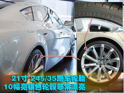 最為一款轎跑車它的四只車輪當然要非常搶眼,這款概念車使用到了4只21寸的亮銀色鋁合金輪轂,筆直的線條盡顯跑車的硬朗與激情,輪胎匹配為245寬度的高扁平比跑車級輪胎,相信這對于跑車性能也會有很大的幫助。