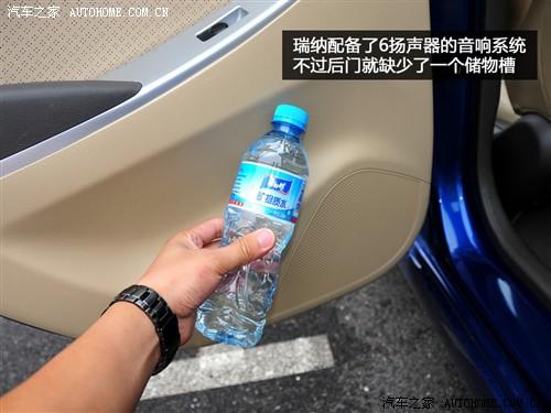 關于儲物空間,瑞納可以說表現還是可以的,基本能夠滿足日常的需要了,可能遺憾的地方就是兩點,一個是后門板為了照顧音響系統,犧牲了后門儲物槽;另外前門板儲物槽把水杯架設計在中間,這樣如果有比較長的物體需要存放,就只能讓水瓶換位置了,但是如果設計在兩端的話,這個問題就解決了。