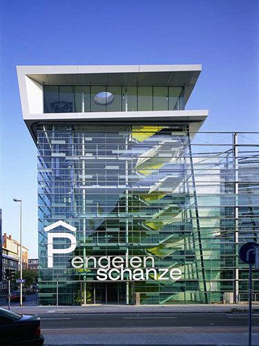 在車庫,人們往往會感到不適,改善的理想方法是增強光線和讓空間更開放。這座停車庫采用了全玻璃外墻和有瀑布、小溪和玻璃窗簾的內(nèi)庭。創(chuàng)新的坡道設(shè)計確保了上下交通沒有路徑交叉。