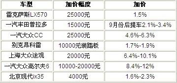 但是今年很奇怪,一邊是瘋狂降價(jià),一邊部分車型的加價(jià)情況愈演愈烈,尤其在省外市場(chǎng)上,2010款路虎攬勝5.0車型的加價(jià)額度在18萬(wàn)-20萬(wàn)元,雷克薩斯GX460的加價(jià)額度為11萬(wàn),加價(jià)幅度幾乎占到了車價(jià)的10%以上,據(jù)說最高一個(gè)城市的加價(jià)比例為25%。