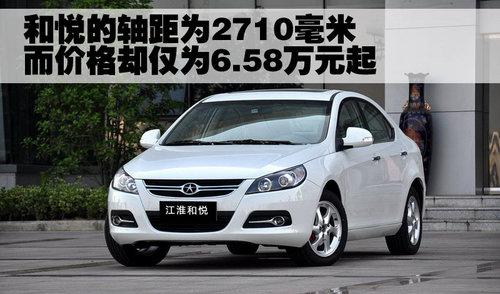 江淮和悅定位于家用經濟型轎車,整車的尺寸達到了B級轎車的標準。和悅整車長為4590毫米、寬度為1765毫米、高度為1465毫米,整車軸距達到了2710毫米,使后排的乘坐空間非常寬綽。另外,和悅三廂的行李箱空間也非常大,可以滿足家用各種承載需求。