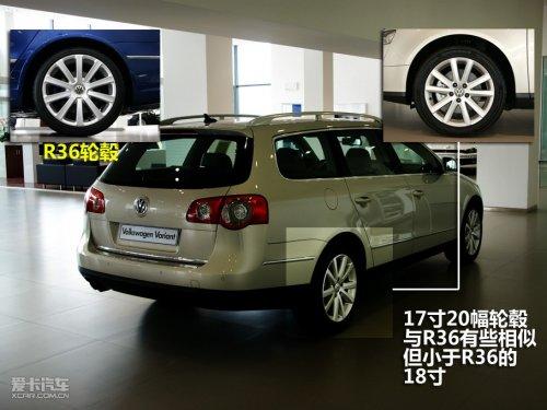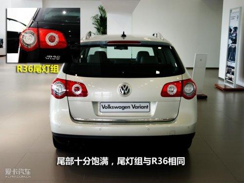 PASSAT旅行版與PASSAT高性能版R36在外觀上也非常相似。車頂?shù)幕【比較平緩,車身側(cè)面一條鍍鉻防擦條從前前門一直延伸至車尾,令車身更顯修長。與國產(chǎn)邁騰一樣,PASSAT旅行款的軸距同為2709mm,沒有進行加長。而車頂?shù)男欣罴軇t是旅行版車型的必備配置。與車身同色的行李架在視覺上與整車完整度極高,而且對于愛好的旅行的車主而言,行李架的實際意義非常重要。