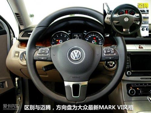 坐進PASSAT旅行版的車廂之內,雖然整體設計布局與國產邁騰并無二致,但明顯還是能感受到一些不同之處。最直觀的感受來自于方向盤,2011款邁騰的方向盤與老款一致,并未發生變化。而PASSAT旅行版則裝備了出現在國產高爾夫6上的大眾MARK VI風格方向盤。這一變化給車廂增添了一些新鮮的氣息,眾多的多功能按鈕非常好用,換擋撥片則令駕駛樂趣大幅增加。
