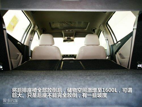 后排座椅的變化也十分豐富,既可以4\6分折,也能全部放倒。但遺憾的是后排座椅并不能全部放平,與后備箱還是有一個小小的坡度。而即使這樣,在放倒后排座椅后,可以令整個后備箱的容積激增至1600L!這可以說是一個非常“恐怖”的數字,超過了很多大型SUV儲物極限。