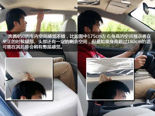 奔騰B50在同級別轎車的尺寸中算的上是大號的,尤其其2675mm的軸距幾乎可以在同級別轎車中稱霸,再加上并不算太窄的1785mm車體寬度,而且奔騰B50也沒有如奇瑞A3一樣的“蛋形”外觀,所以可想而知其內部空間應該會不錯。