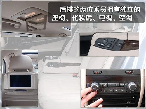堪比頭等艙環境的后排空間可以乘坐兩名乘客,他們分別都有自己的獨立座椅?梢赃M行多向調節(甚至是調節成一個大沙發)。同時腰部支撐、2組位置記憶也都是BMW對于后排乘客的周到考慮。BMW新7系轎車擁有人性化的4區域空調,車內每一位乘員都能夠擁有自己最合適的溫度環境。此外后排空間人性化配置還包括電動的遮陽簾和帶照明的化妝鏡。此外新7系轎車除740豪華型外,其它配置車型都帶有后排手持電話機,可以直接插入SIM卡進行電話撥打,同時也為駕駛者提供了藍牙免提電話準備功能(740li豪華型有此配置)。
