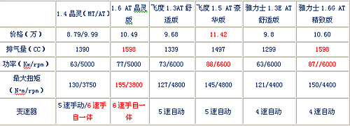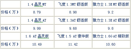 上表列出了晶靈版晶銳、飛度和雅力士三款車型的售價,從中我們可以發(fā)現(xiàn):首先,在手動車型方面,晶靈版1.4MT車型的售價僅為8.79萬,比雅力士和飛度都要低;其次,晶靈版晶銳1.4AT在價格上看似要比競品的1.3L AT車型稍高,但考慮到晶銳采用的是Tiptronic6擋手自一體變速箱,而飛度和雅力士都是四檔自動,落后不止一點,加上晶銳的配置要豐富很多,這點在后文會有詳細(xì)介紹,綜合來看晶銳1.4AT晶靈版的性價比優(yōu)勢還是相當(dāng)突出的。另外,晶銳1.6L AT晶靈版,無論是品質(zhì)上,還是配置上都擁有同級競品車型所無可比擬的優(yōu)勢,而其價格卻要大大低于這些競品。