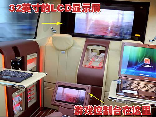32英寸的LCD顯示屏放置在前排座椅后的隔斷墻上,其可以作為索尼Vaio筆記本電腦系統(tǒng)的顯示器,并且該車的車廂內(nèi)部還有無(wú)線網(wǎng)絡(luò)又來(lái)連接另外的筆記本電腦。所安裝的索尼Playstation 3游戲控制臺(tái)可以播放電影以及賽車模擬游戲。此外其較大的顯示屏還可以同時(shí)全方位的展示車輛周圍的狀況。