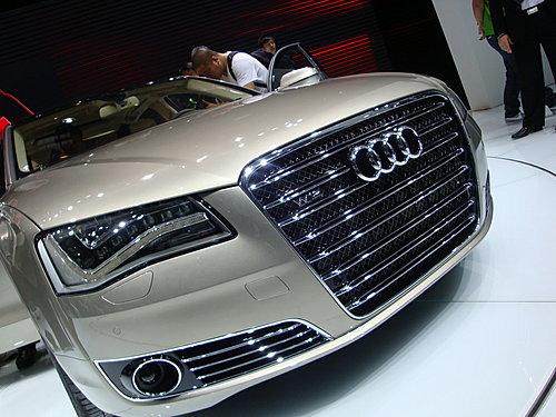 全新奧迪A8L W12 quattro在車身外觀上還有一系列的改進,包括單幅式水箱進氣格柵,其中間為鉻金屬噴涂的橫條裝飾。在其空氣通風口以及側后視鏡邊緣還擁有鉻金屬的嵌入物裝飾。其進氣格柵處及車尾還配有W12的標志,以顯示該車身份的不同。梯形的雙尾氣排放管與后保險杠完美的結合在一起。