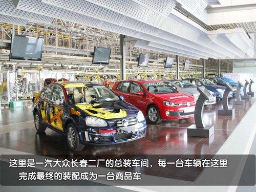這里是一汽大眾長春第二工廠的總裝車間,車輛門在這里完成“最后的儀式”。在總撞車間的門口可以看到這里生產的每一款車型,打頭的一臺速騰解剖車非常吸引大家的注意(我們隨后會有單獨文章詳細介紹)。從前一工序的噴漆線來到總裝線的準新車都在天上“飛著”。而等到車輛從天上降落到地上之后車輛距離生產完畢就很快了。