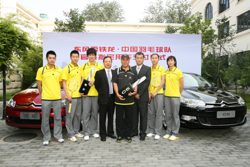東風(fēng)雪鐵龍副總經(jīng)理魏文清為中國(guó)羽毛球隊(duì)交付“榮耀座駕”C5和“冠軍座駕”世嘉