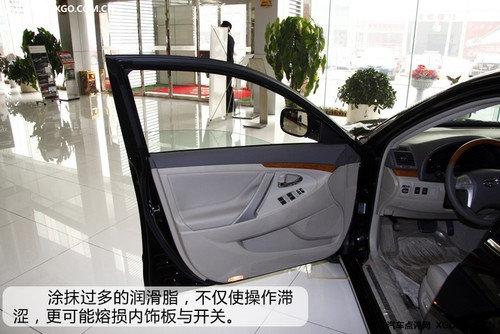 國產凱美瑞內飾做工方面的“縮水”,也是頗為消費者詬病的一點。車門上單薄的用料讓人對其的側面碰撞成績深感擔憂;而板金焊接工藝也只能說是一般;車內飾的用料在同級車中也只能算一般,在一些細節部分的拼接還有進一步提升的空間;上市多年來,旋鈕上的標注依然是原先的英文,這有點讓人無法接受,幸好內裝的導航系統已經達到了真正的中文化。