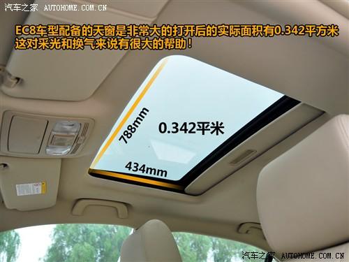 較長的車身尺寸使得EC8車型在后備箱容積上也有同級車中相對較大的容積-504L,不過后備箱看后有些不方便,進(jìn)入大件物品比較費勁。