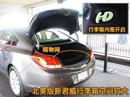 北美版新君威的行李箱門為電磁式開啟,行李箱面積很大,足以滿足人們的日常使用。當后排座椅放倒后,行李箱容積則大大提升。備胎和車載工具位于行李箱底部。