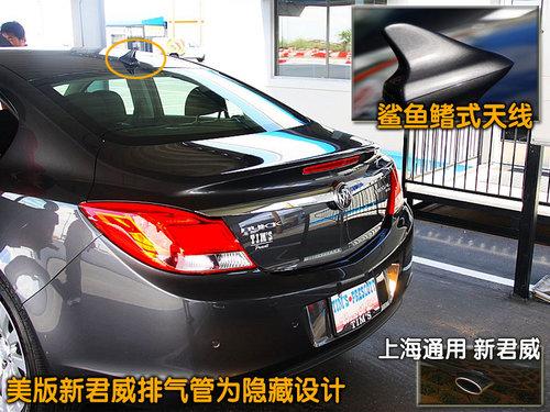 北美版新君威配備了信號較強的鯊魚式的天線,這樣的配置一般在豪華車中才可以看到。同時北美版新君威尾排采用了隱藏式設(shè)計與國內(nèi)版本的外露式不同。