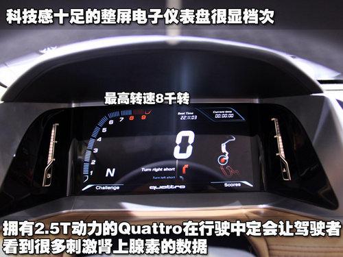 科技感十足的整屏式電子儀表盤是奧迪Quattro概念車的另一大創(chuàng)新,8000轉的最高轉速向人們顯示了他的實力。除了車輛信息,顯示屏也同樣會顯示導航等信息,這也就是為什么中控臺如此簡潔的原因。