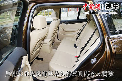 X1寬敞的內部空間,無論前排還是后排,尤其在頭部空間上,都可以令人滿意。身為跨界車的X1,在此點上比起轎車的優勢要明顯許多。而在乘坐或者駕駛的過程中又感覺不到SUV那種高大,對于公路行駛這樣的視線高度恰到好處,四周的視野非常不錯。