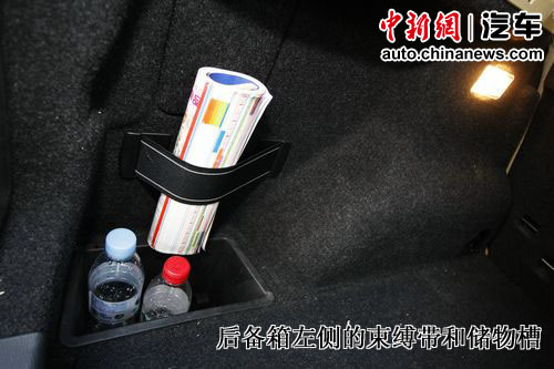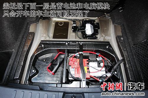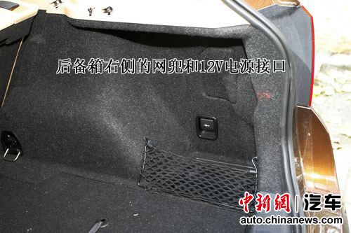 后備廂空間中規(guī)中矩,不過后排配有三個獨立的座椅,可分為三部分放平并可調節(jié)角度,將后備廂容量從420升增加到1350升。由于采用缺氣保用輪胎,備胎的位置讓給了電瓶,另外還有淺淺的一層九宮格似的儲物板,可以放些書籍一類的雜物。