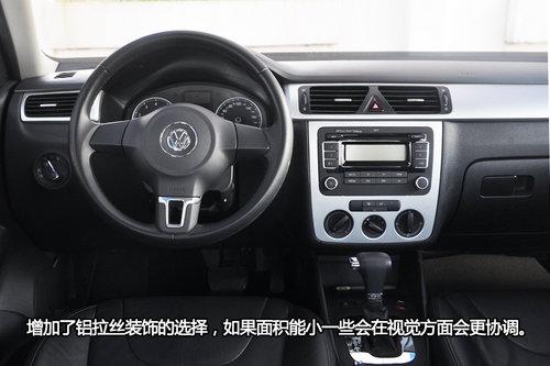 桃木裝飾對于現在早就已經過時了,尤其是那些裝了仿桃木裝飾的車型總會給人俗套和老土的感覺,老款寶來曾經就是這樣,好在2011款終于增加了鋁拉絲內飾,但是這部分裝飾面積很大,容易暴露出質感上的不足,而且如果面積小點,在視覺上會更協調。