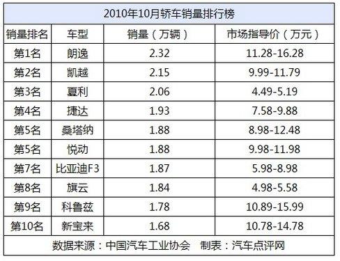 自主品牌三分天下 10月銷量前十車型點評(圖)