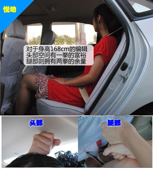悅動的車身長進(jìn)了不少,車身長/寬/高分別達(dá)到了4542mm/1775mm/1490mm,軸距更是達(dá)到了2650mm,這使得車內(nèi)空間較之伊蘭特更充裕:身高168cm的乘客在前排時,在保證一個自然放松姿勢的同時,頭部還能夠留有一拳以上的活動空間,只是側(cè)向支撐不佳,座椅也只能通過手動調(diào)節(jié)。