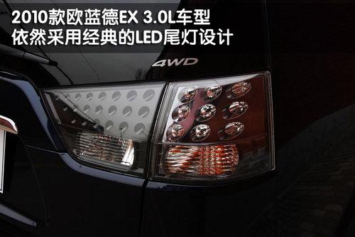 三菱2010款歐藍德EX 3.0L車型與其他排量車型相比,尾部的變化并不明顯,尾燈依然采用了傳統的LED設計,全尺寸備胎采用后部底盤懸掛式配備。但歐藍德EX 3.0L車型尾部采用雙排氣管的設計,畢竟排量大了。歐藍德EX 3.0L車型采用多連桿獨立后懸掛,配備了橫向穩定桿,可以更好的提高操控性。