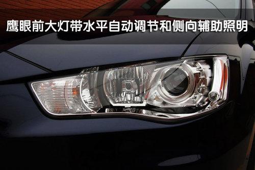 三菱2010款歐藍德EX 3.0L車型的前大燈采用鷹眼式設計,并且帶有水平自動調節功能和側向輔助照明功能。與歐藍德EX其他排量不同的是,3.0L車型的前霧燈和前臉周圍都帶有鍍鉻裝飾,這一點與EVO X非常相似。另外,歐藍德EX 3.0L的前保險杠底部配備了護板。