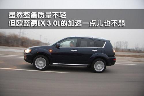 三菱2010款歐藍德EX 3.0L車型搭載了全新的V6 MEVIC發動機,最大功率可以達到169千瓦。而且這款發動機擁有非常不錯的低扭表現,在3750轉的時候即可有291牛米的最大扭矩。在試駕過程中,我們雖然能感覺到歐藍德EX 3.0L沉重的整備質量,但這款車的加速卻非常迅速,尤其是行駛中提高轉速,只需要輕踩油門就能感受到強烈的推背感。