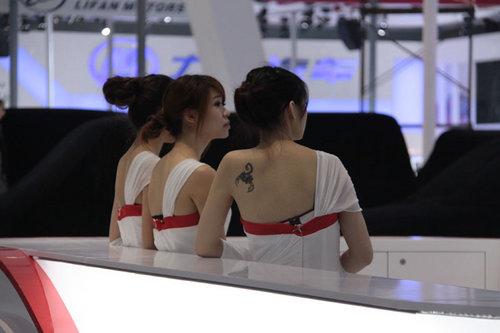 經過幾個展館的掃拍,發(fā)現(xiàn)美女模特很多都喜歡這樣的黑框眼鏡,看來這又要成流行趨勢了,黑皮衣的穿著也是很有味道的。