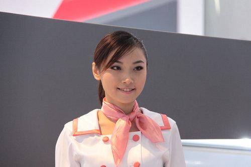 當然了作為國際車展洋模特的少不了的,看這位美女開心的,不知道是什么事情讓她在彩排時這么高興。