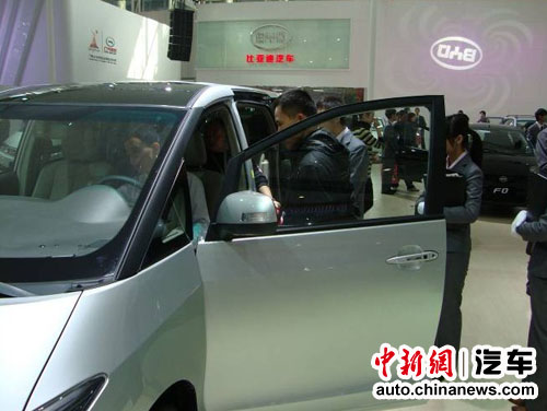 比亞迪M6七座超大空間的魁偉身材格外迷人,興趣盎然的參觀者紛紛上車體驗,一會坐前排,一會到后排,有的用拳頭量量尺寸,舒適地依靠一下,有的更細致地研究起車內的各種高科技配置。